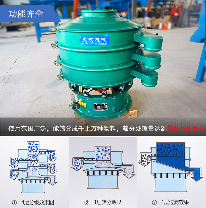 碳鋼振動篩的使用范圍廣泛,能篩分成千上萬種物料,如:洗衣粉、膩子粉、石英砂、谷糠、紙漿、尿素、聚乙二醇、、飼料、建筑石膏粉、催化劑等,可滿足10目 - 400目物料的篩分、過濾、分級、除雜,功能齊全、簡單篩分用單層、多規格分級用多層,篩分處理量達到500kg/h-1t/h,可以與生產線結合。