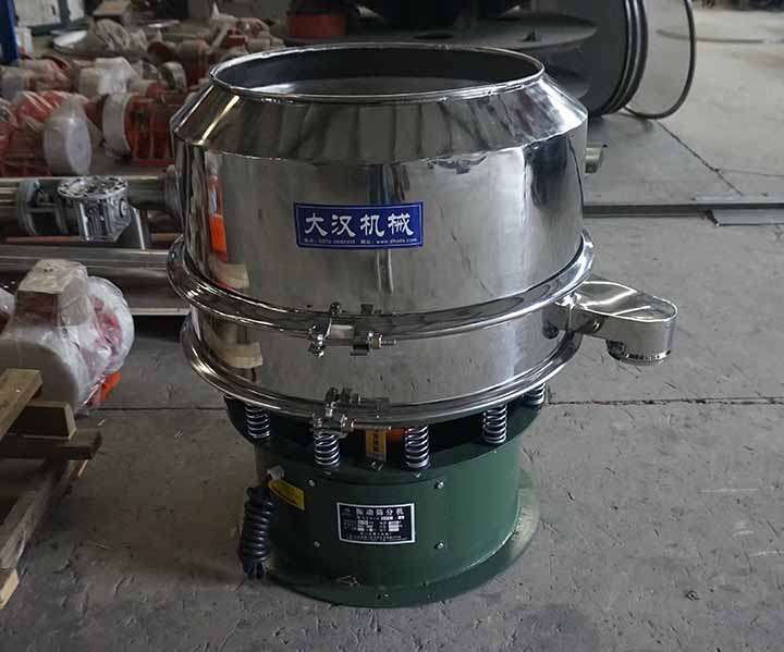 下面這是振動篩,還可以篩分果汁、酵母液、樹脂溶液、顏料漿料、橡膠粉、碳黑、活性炭、鋁粉、涂布涂料等物料。