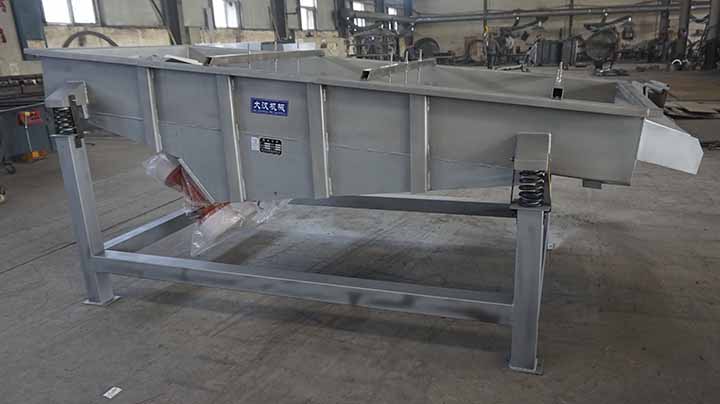 重型直線篩由篩箱、振動電機、減振系統及底架等組成。篩箱由篩框、篩板、襯板等組成。