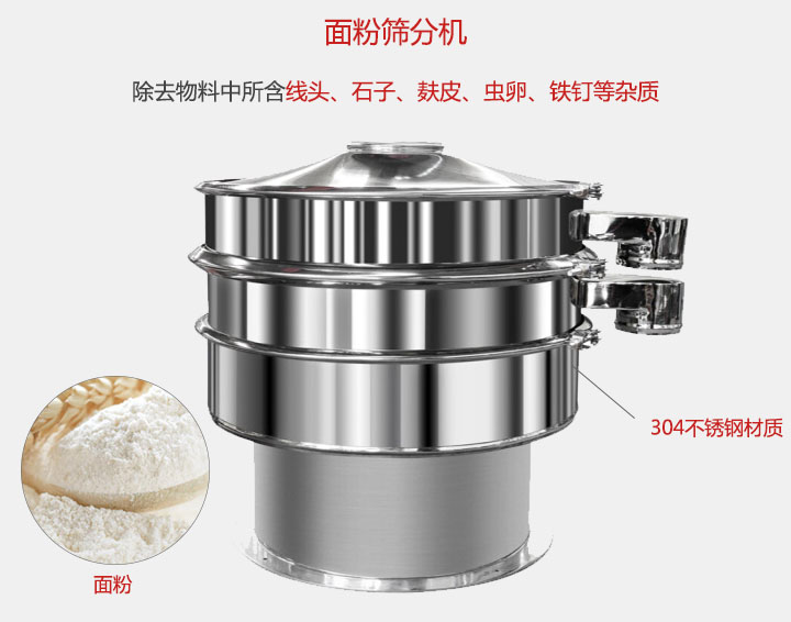 面粉篩分機(jī)廣泛用于:顆粒染料,面粉,石粉,樹(shù)脂粉,桃汁,金屬粉末 ,鎢粉,玉米,碎石粉,石英砂。